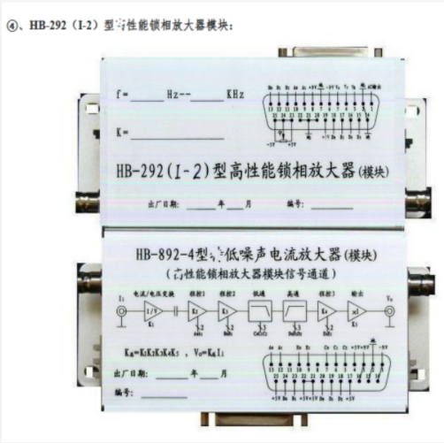 用HB-292型雙相鎖相放大器(模塊)+HB-892-1型特低噪聲電壓放大器(模塊),組合成性能模塊化鎖相放大器,用于測量微弱電壓信號。